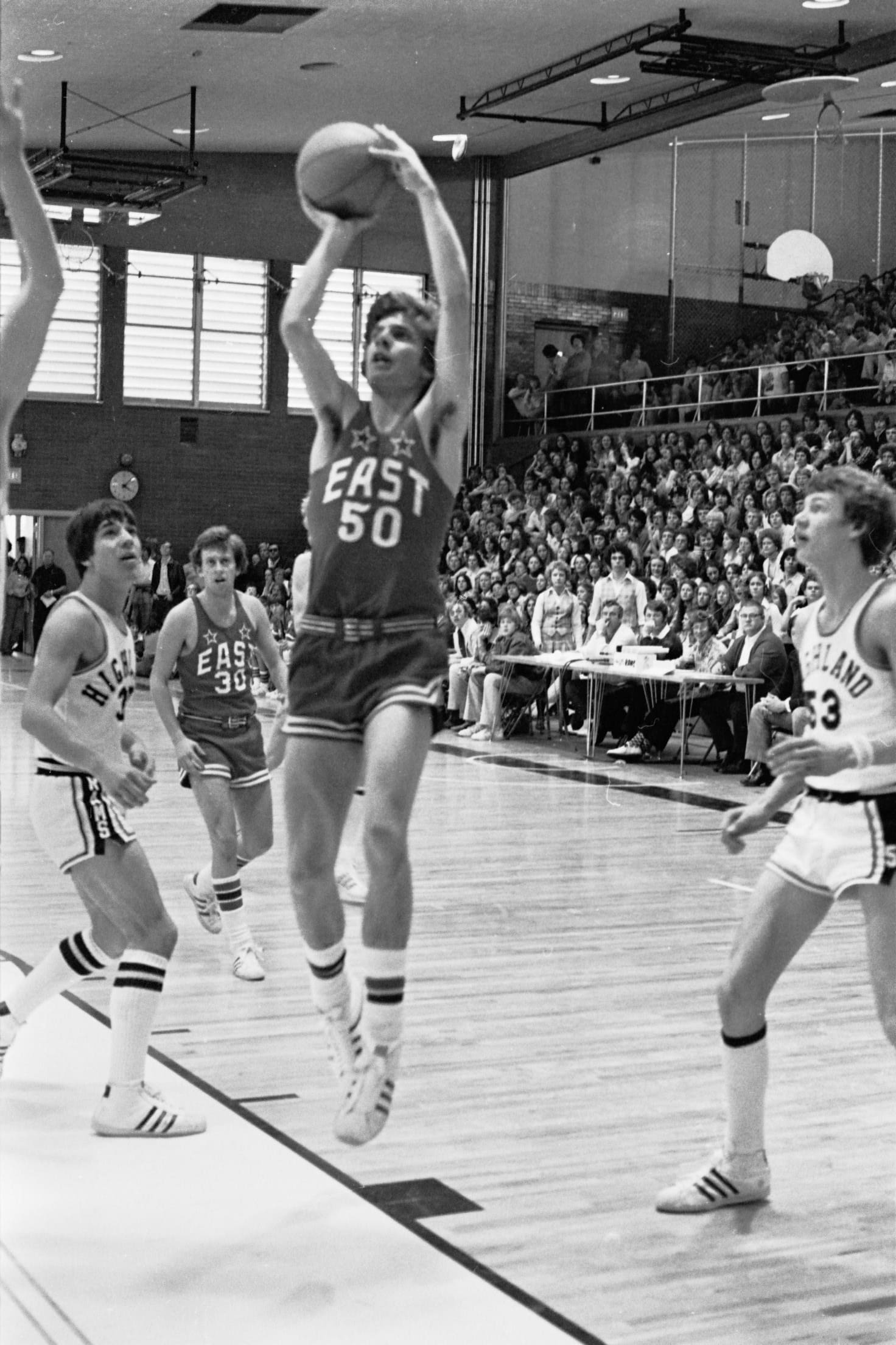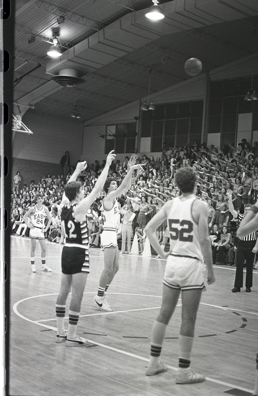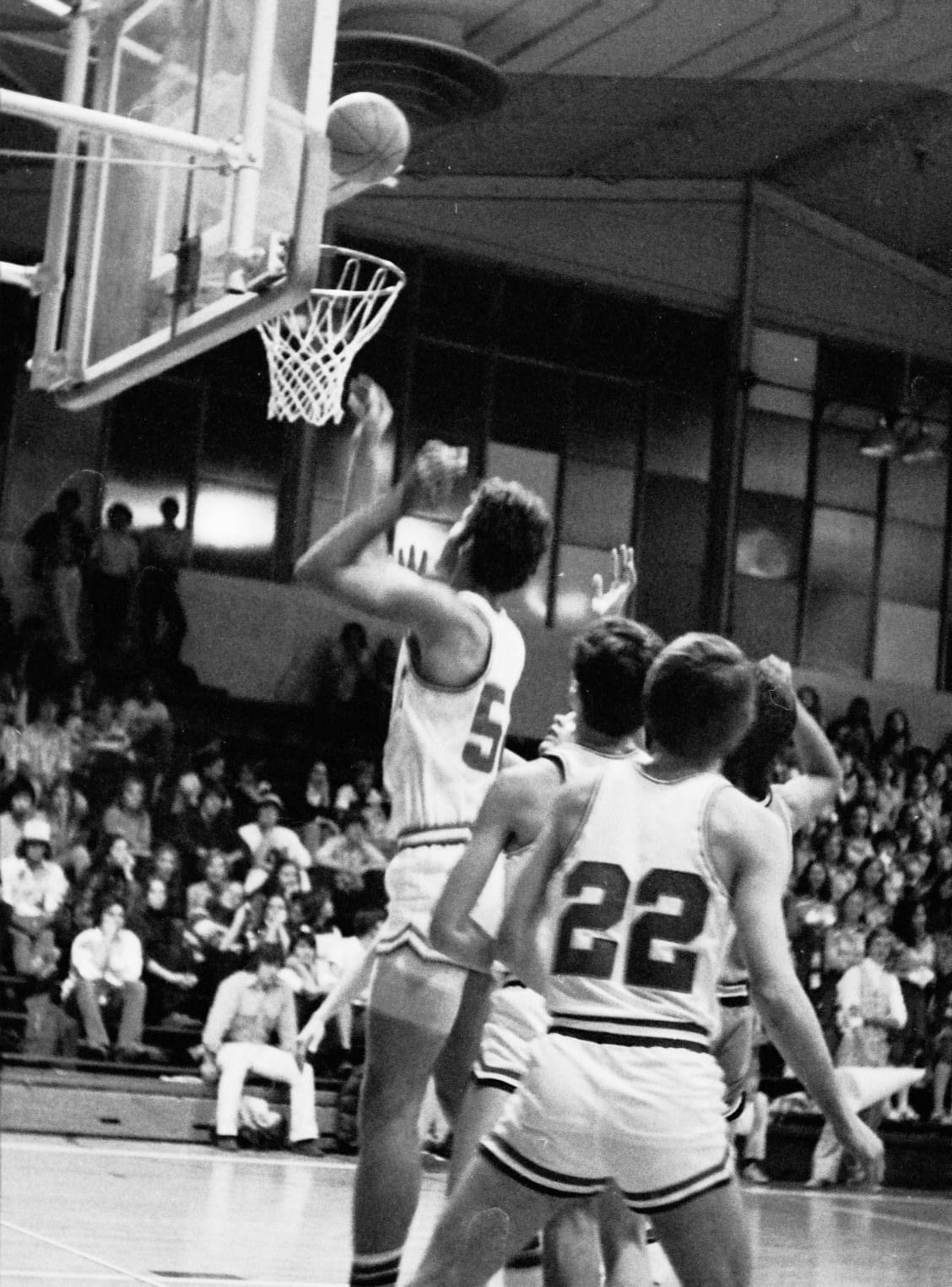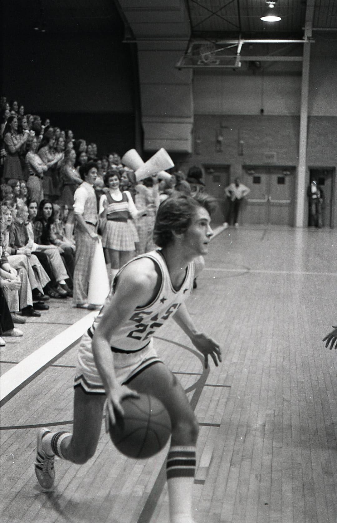 In 1975–76 I was a freshman and did not expect to play basketball. I had not made the basketball team in junior high, so I focused on soccer when I arrived at East. We were a unique class, as we were the first 9th grade class. The Salt Lake school district had previously had 9th grade in junior high. I did not consider that there would be a separate freshman basketball team, as in junior high there was only one team. So I did play basketball after all, and caught Coach Dick Milne's eye. His support began early and lasted through high school. During my freshman year I also played on the sophomore team, then junior varsity. Suddenly basketball was my focus in high school. My breakout year did not happen until I was a sophomore.