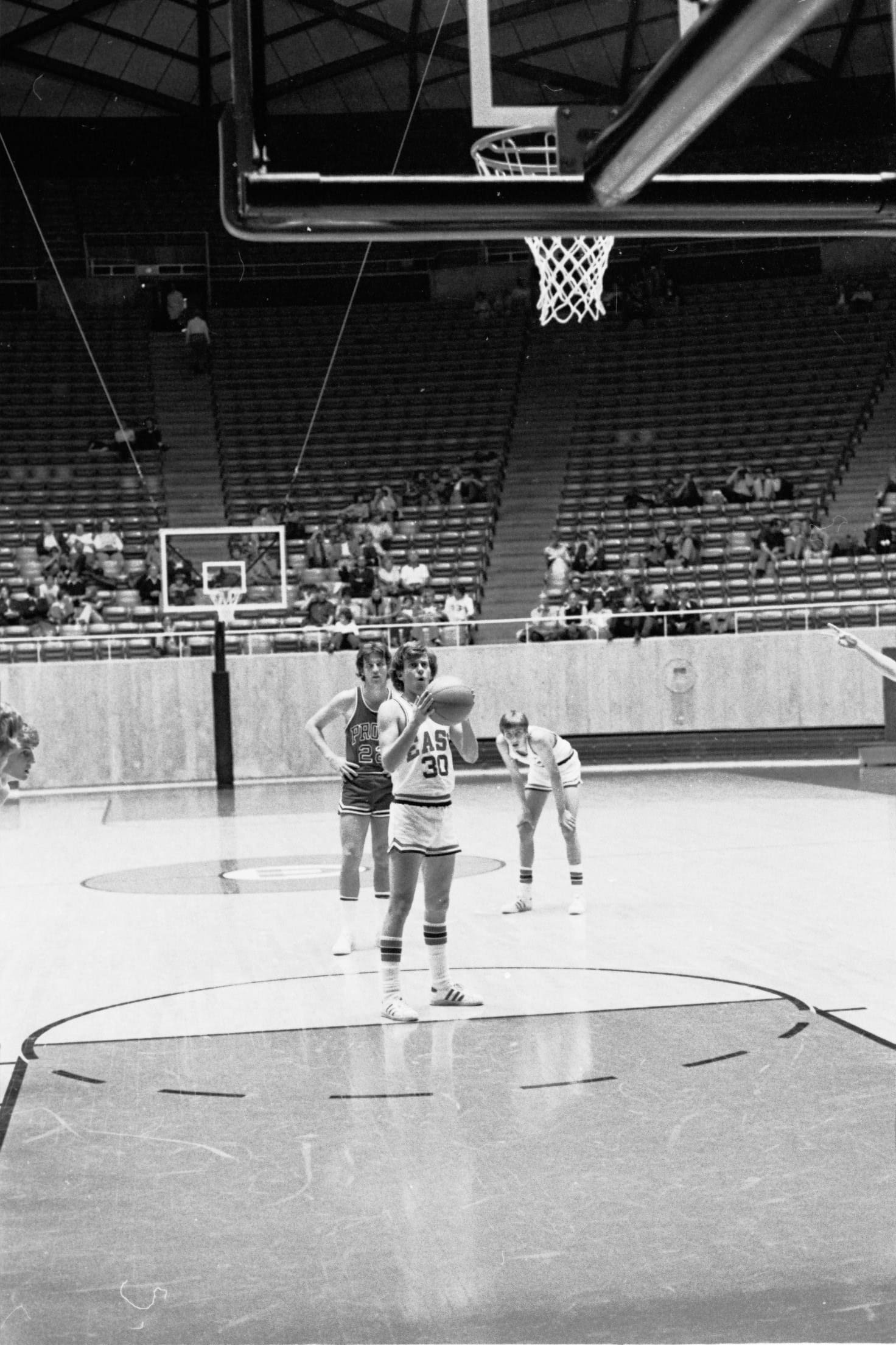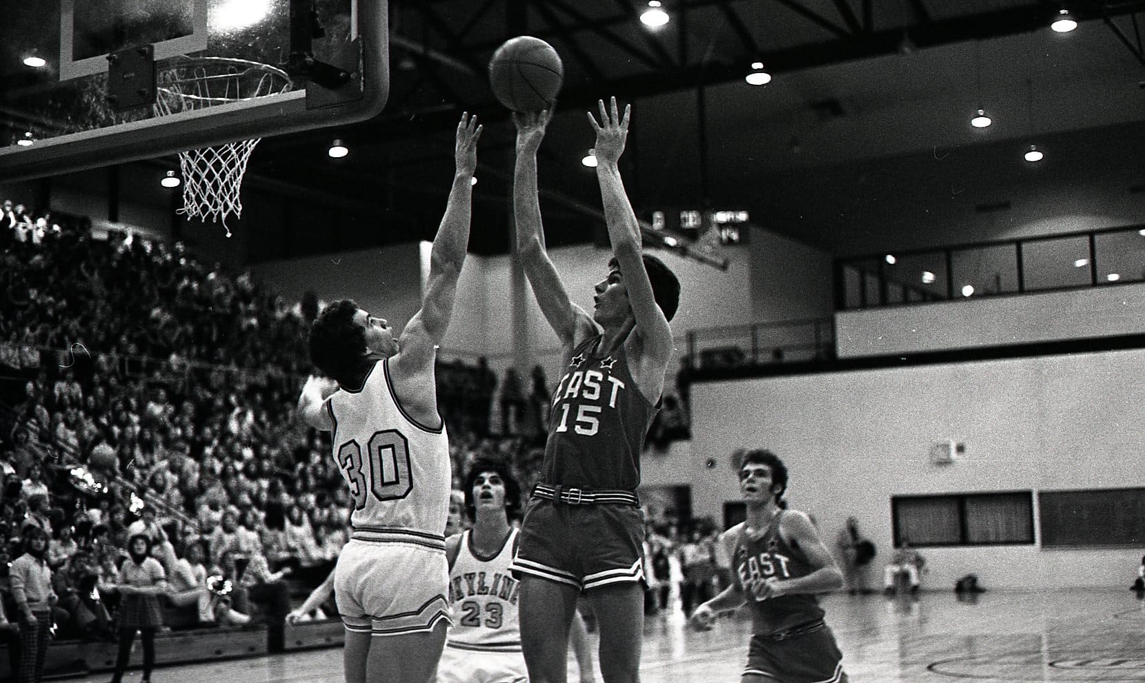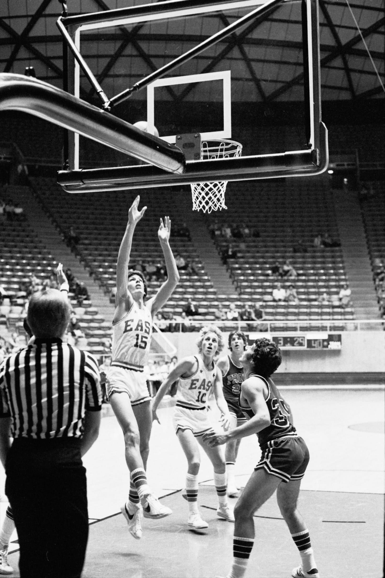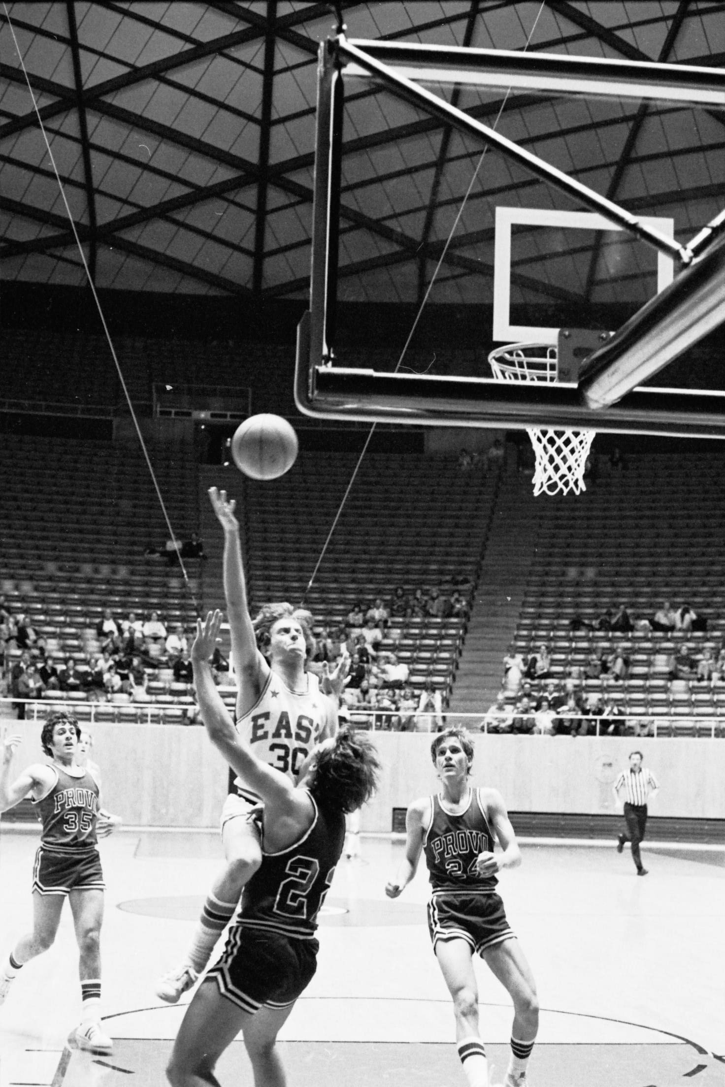 In 1975–76 I was a freshman and did not expect to play basketball. I had not made the basketball team in junior high, so I focused on soccer when I arrived at East. We were a unique class, as we were the first 9th grade class. The Salt Lake school district had previously had 9th grade in junior high. I did not consider that there would be a separate freshman basketball team, as in junior high there was only one team. So I did play basketball after all, and caught Coach Dick Milne's eye. His support began early and lasted through high school. During my freshman year I also played on the sophomore team, then junior varsity. Suddenly basketball was my focus in high school. My breakout year did not happen until I was a sophomore.
