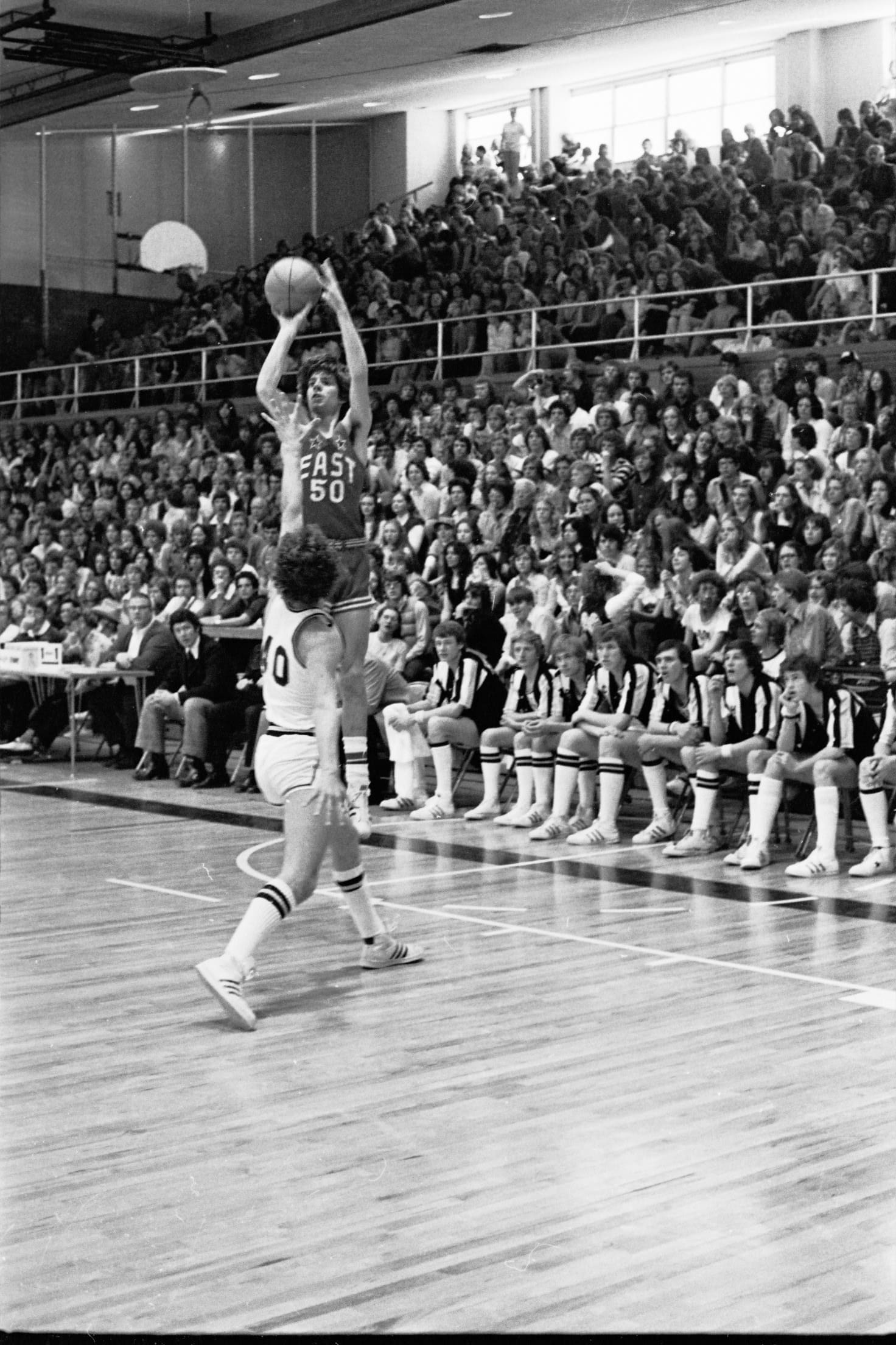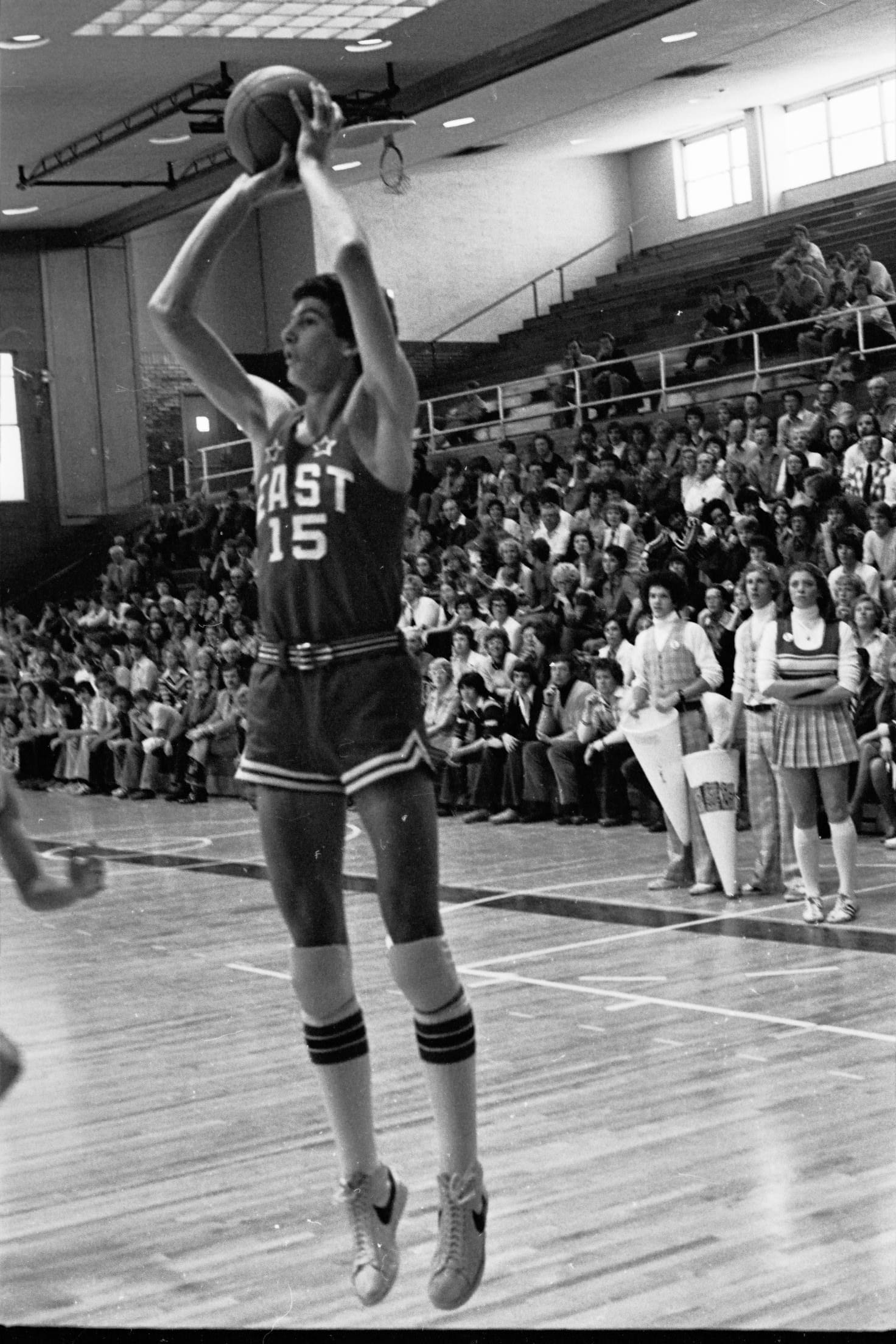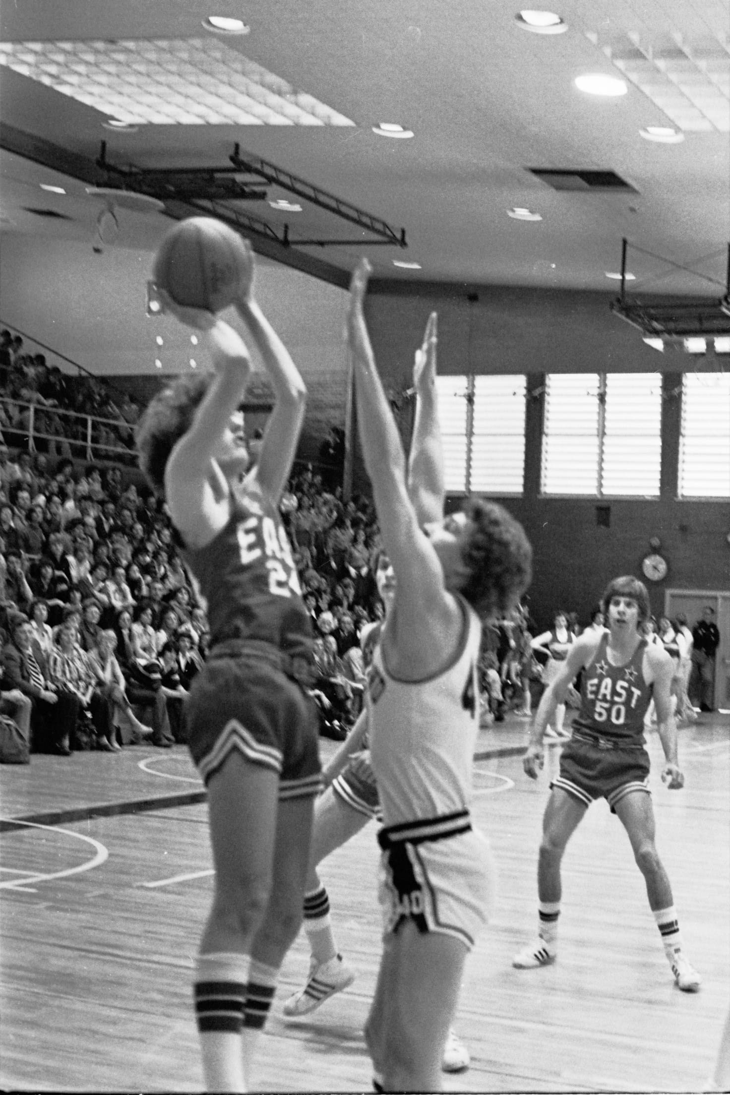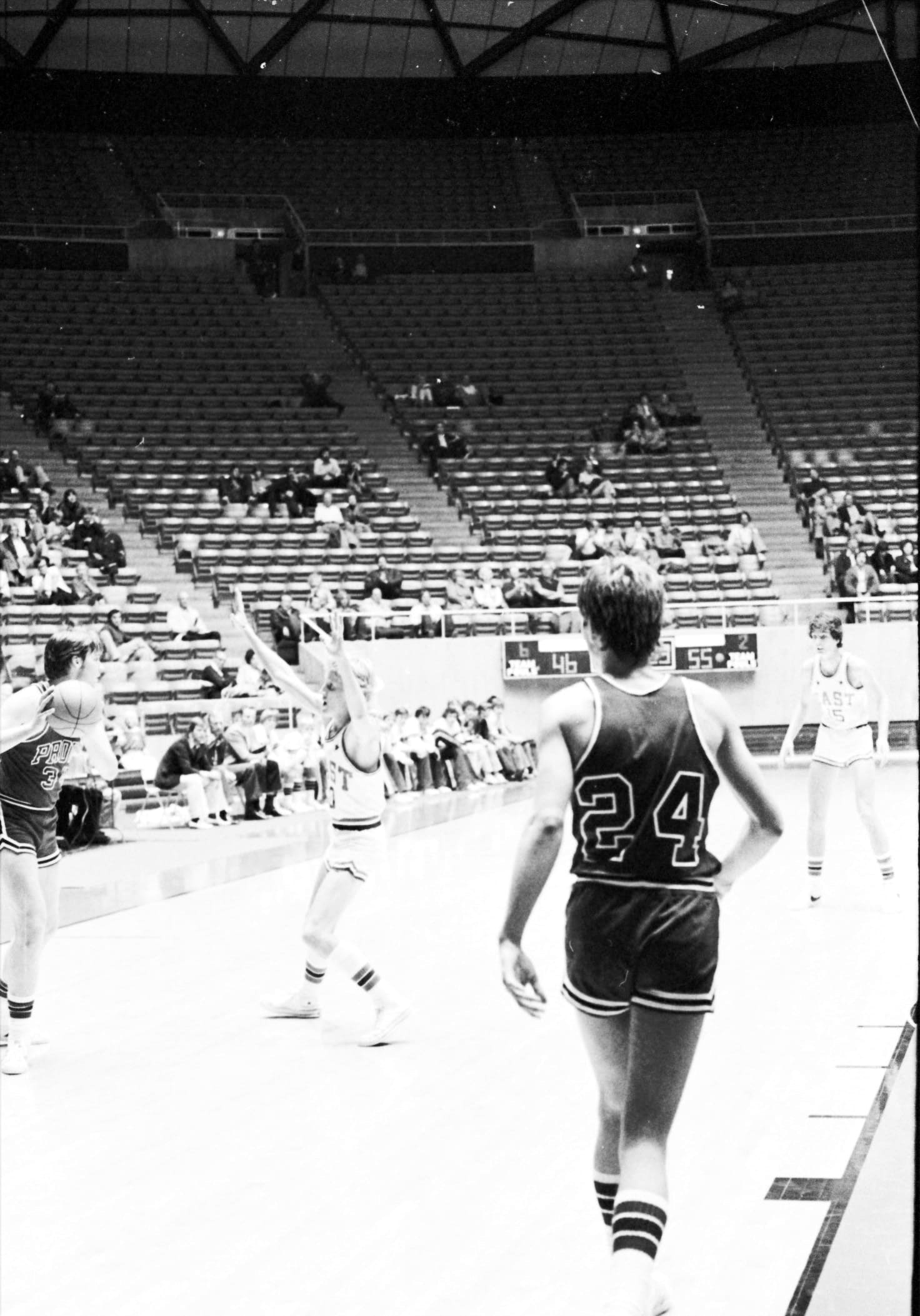 In 1975–76 I was a freshman and did not expect to play basketball. I had not made the basketball team in junior high, so I focused on soccer when I arrived at East. We were a unique class, as we were the first 9th grade class. The Salt Lake school district had previously had 9th grade in junior high. I did not consider that there would be a separate freshman basketball team, as in junior high there was only one team. So I did play basketball after all, and caught Coach Dick Milne's eye. His support began early and lasted through high school. During my freshman year I also played on the sophomore team, then junior varsity. Suddenly basketball was my focus in high school. My breakout year did not happen until I was a sophomore.