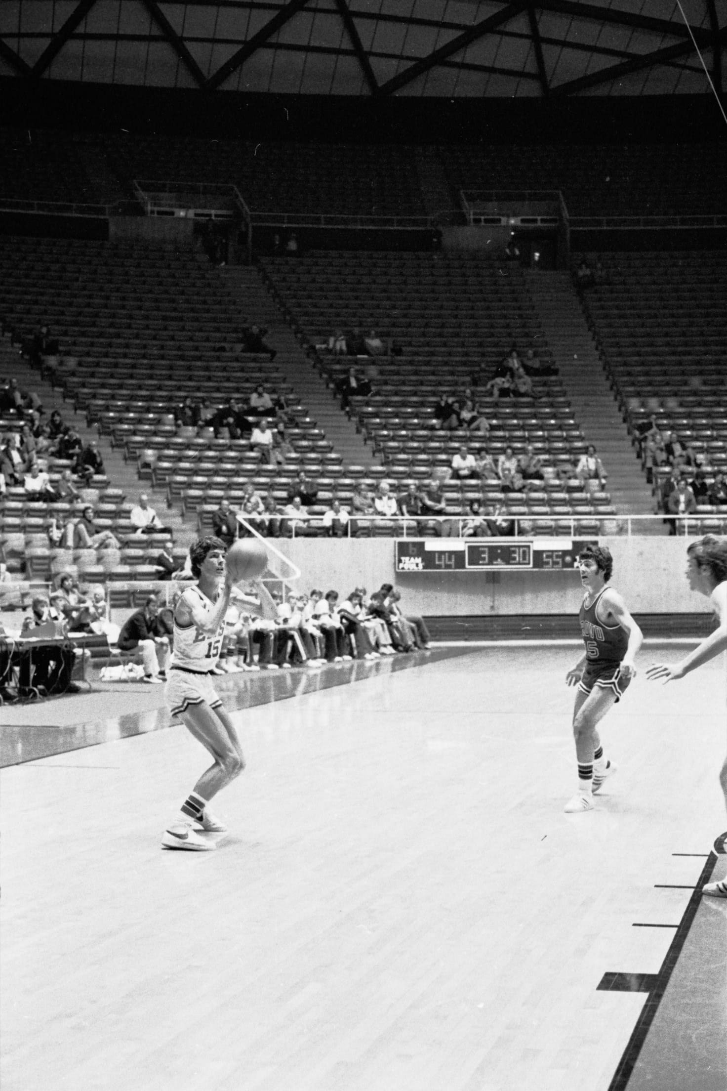 I have a memory of suiting up for a varsity game, but that may be incorrect. The Lumberjack, Tom Hansen, led the 1975–76 team. Despite the age difference, we later were teammates at Dixie College for a year in purgatory in 1979–80.