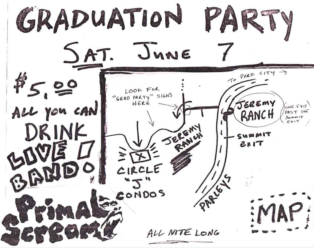234 S. Douglas Street – May 19, 1984. This gig featured an inadvertent pyrotechnic display when our banner caught fire.