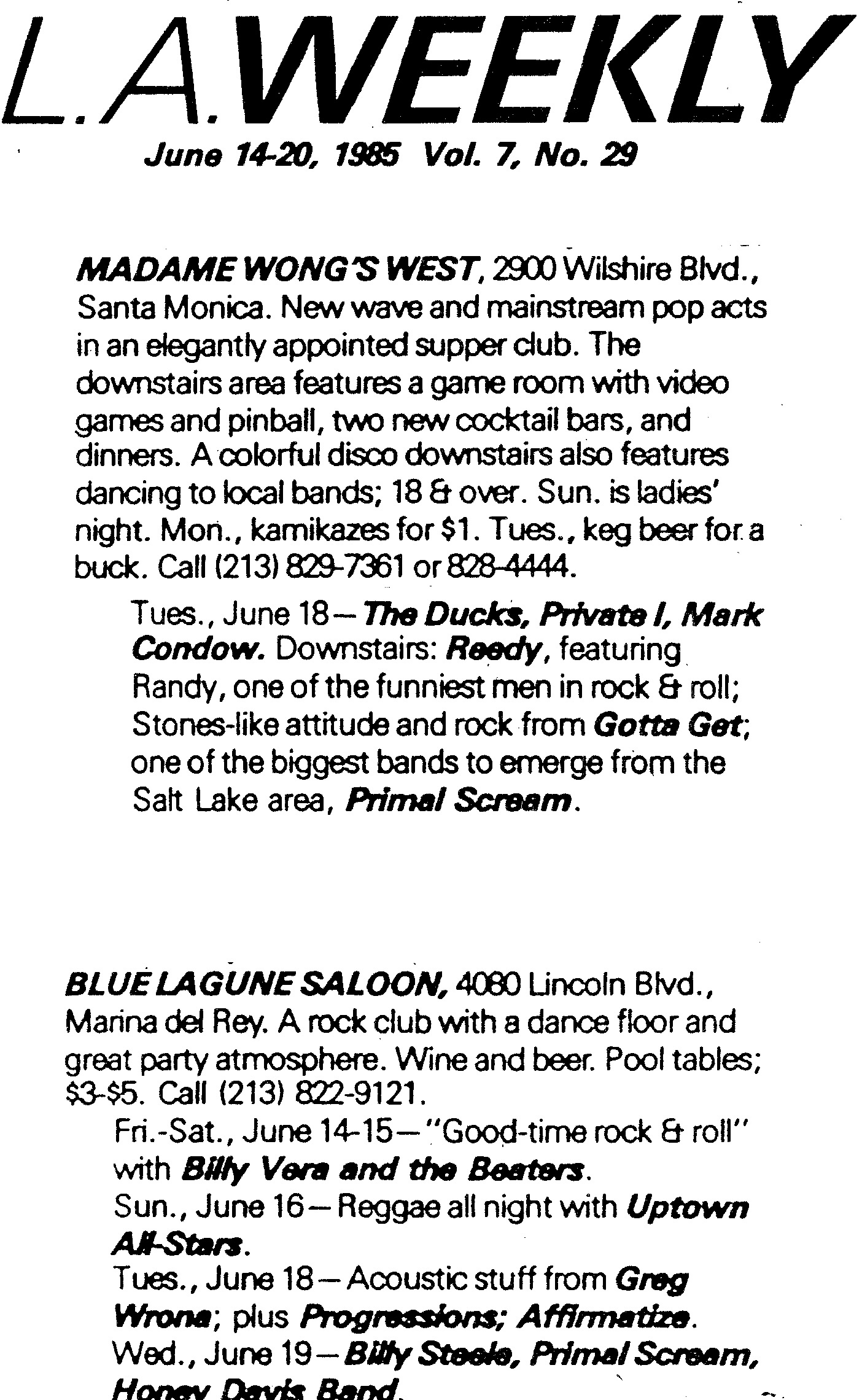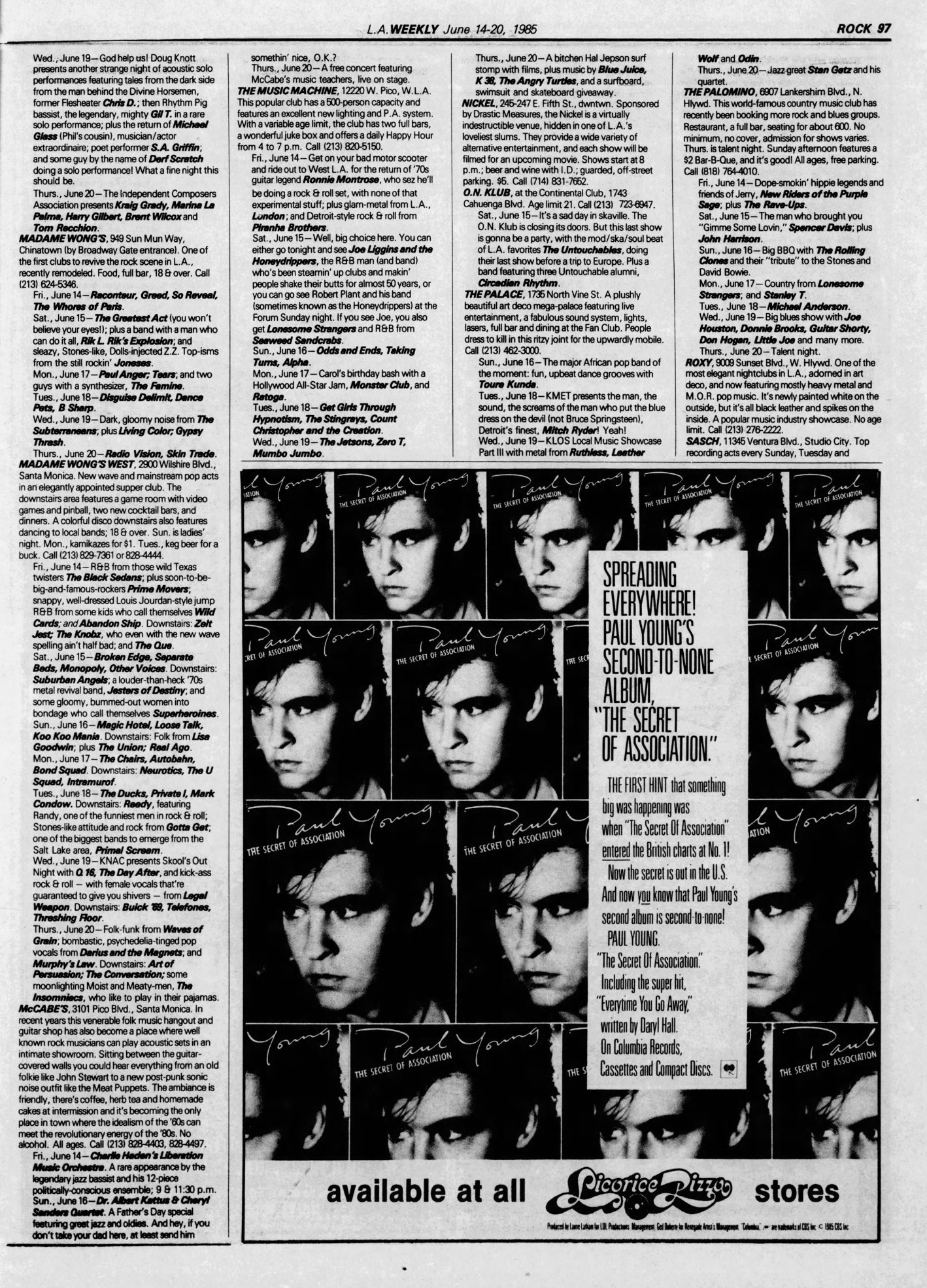 Music Life at the Clubs – June 1985